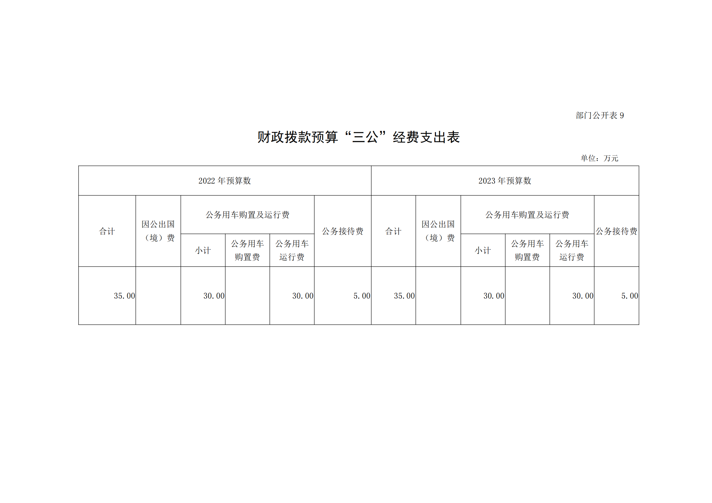 九、财政拨款预算“三公”经费支出表