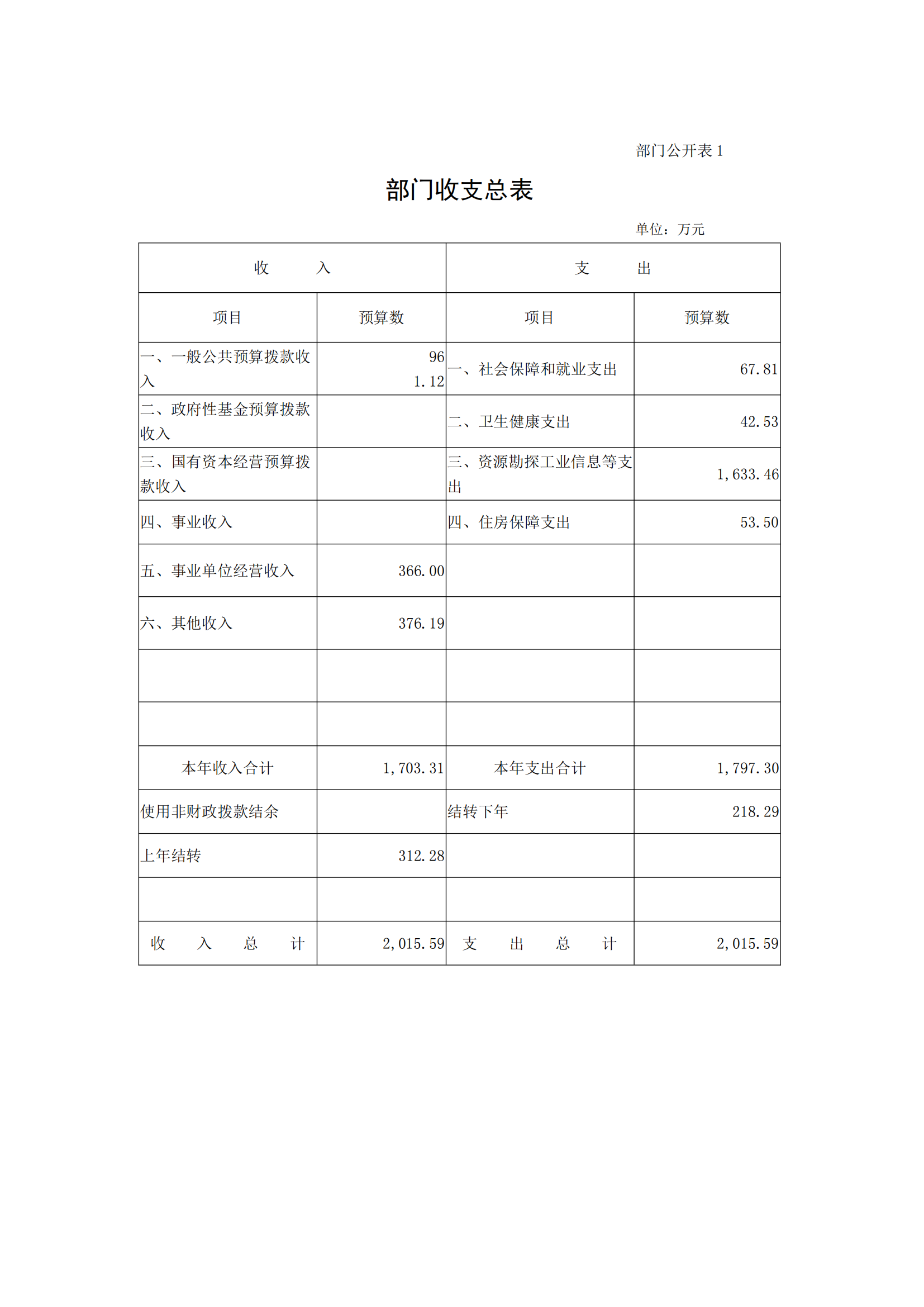 一、部门收支总表