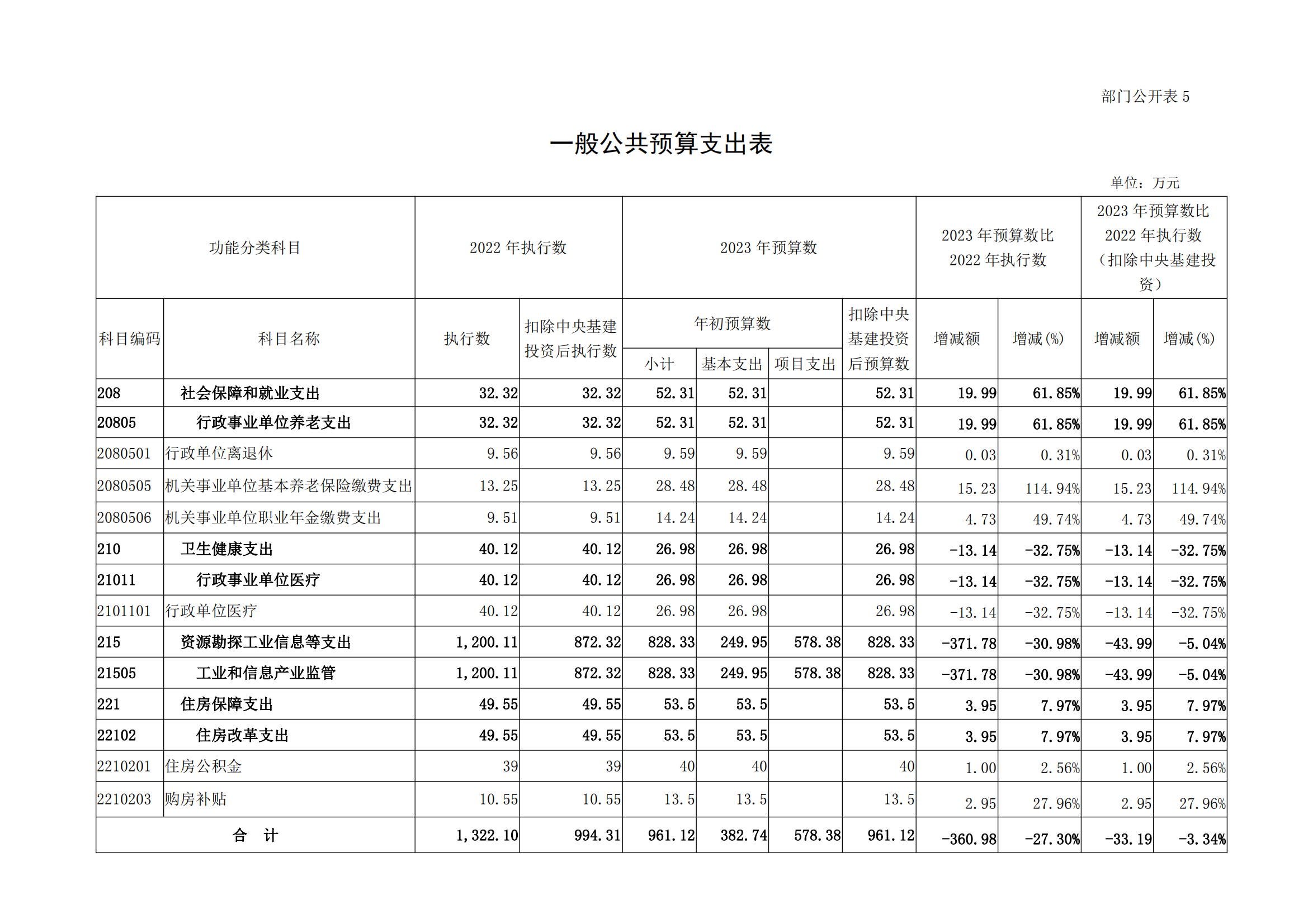 五、一般公共预算支出表