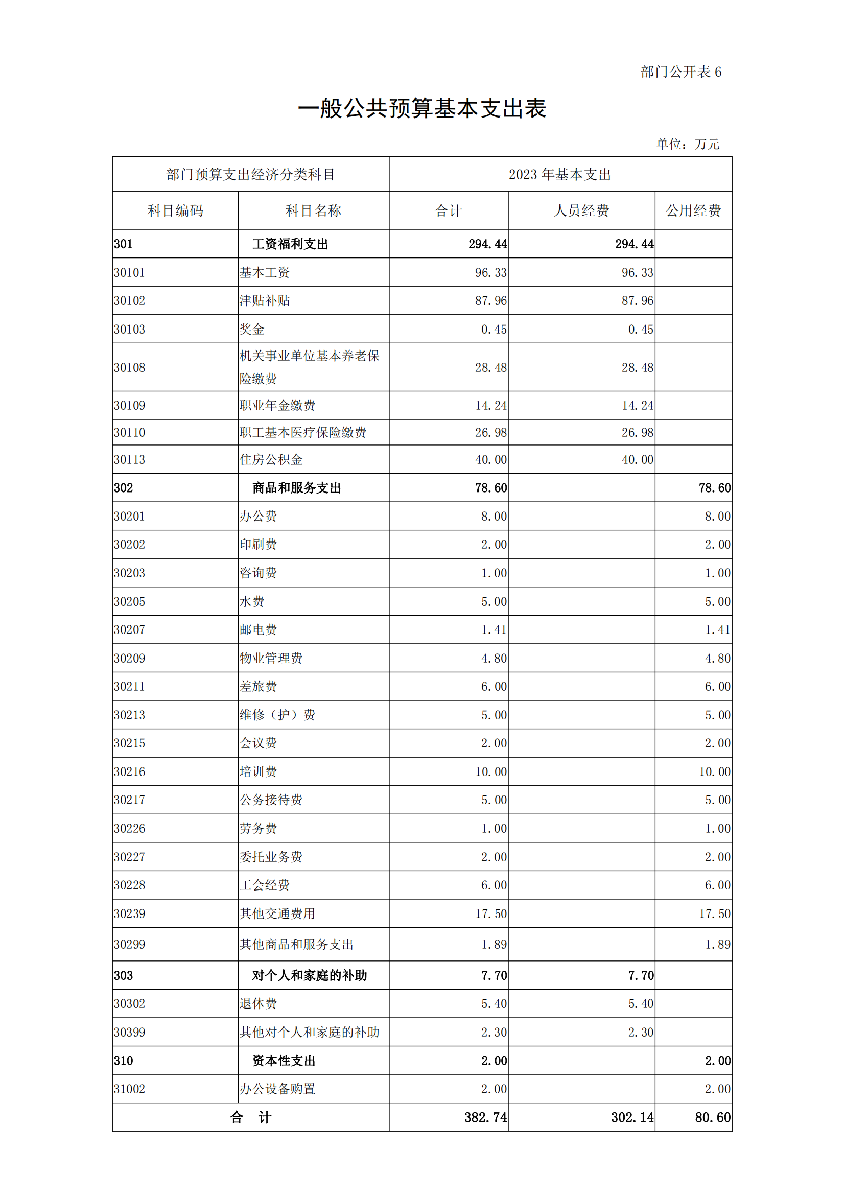 六、一般公共预算基本支出表