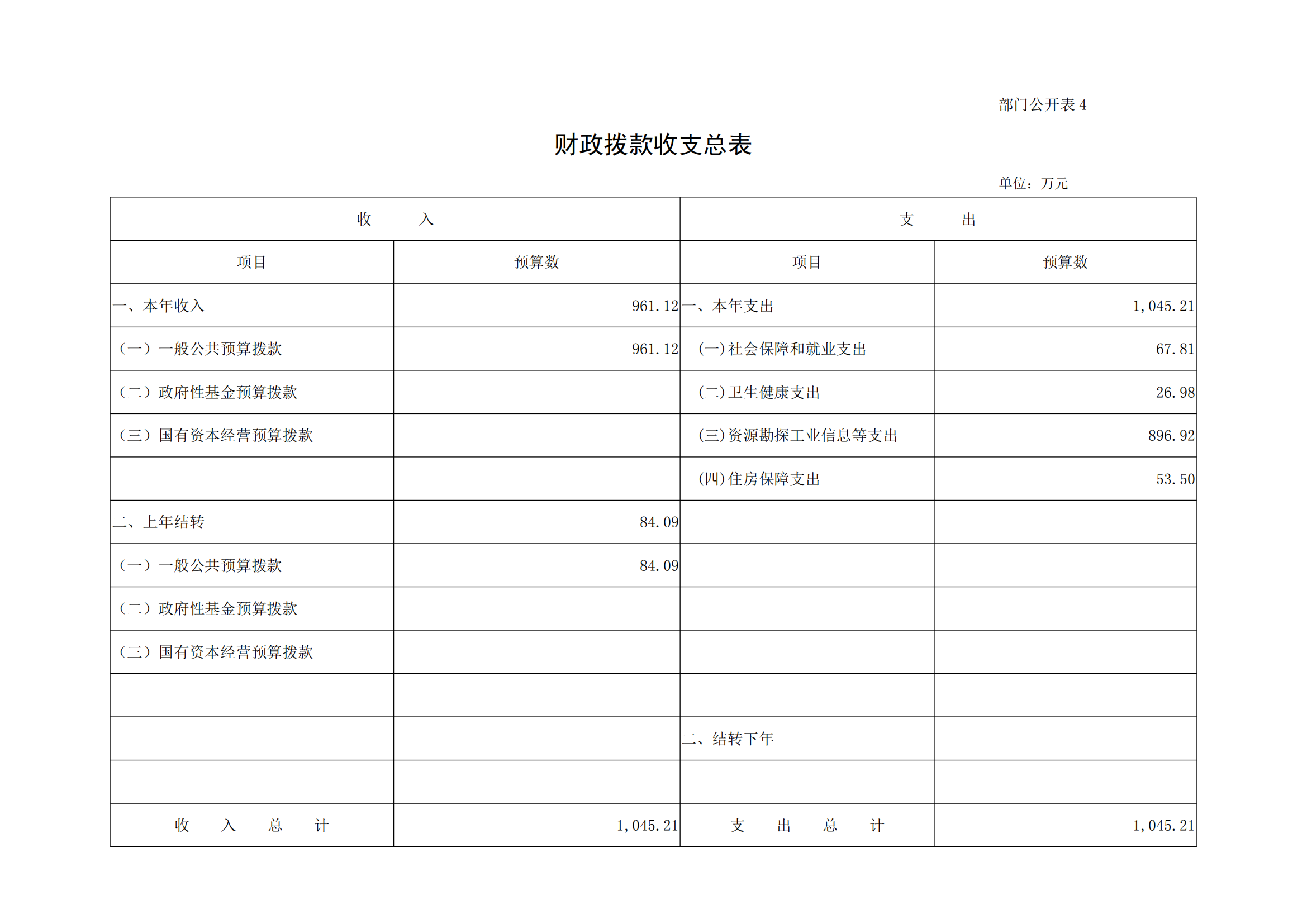 四、财政拨款收支总表
