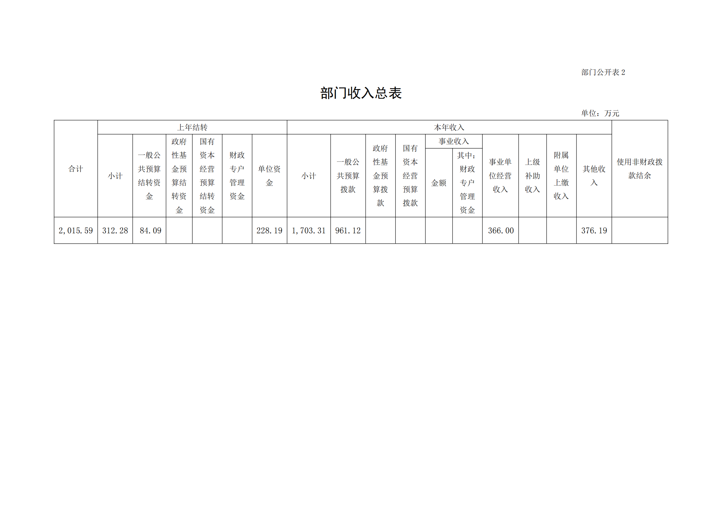 二、部门收入总表