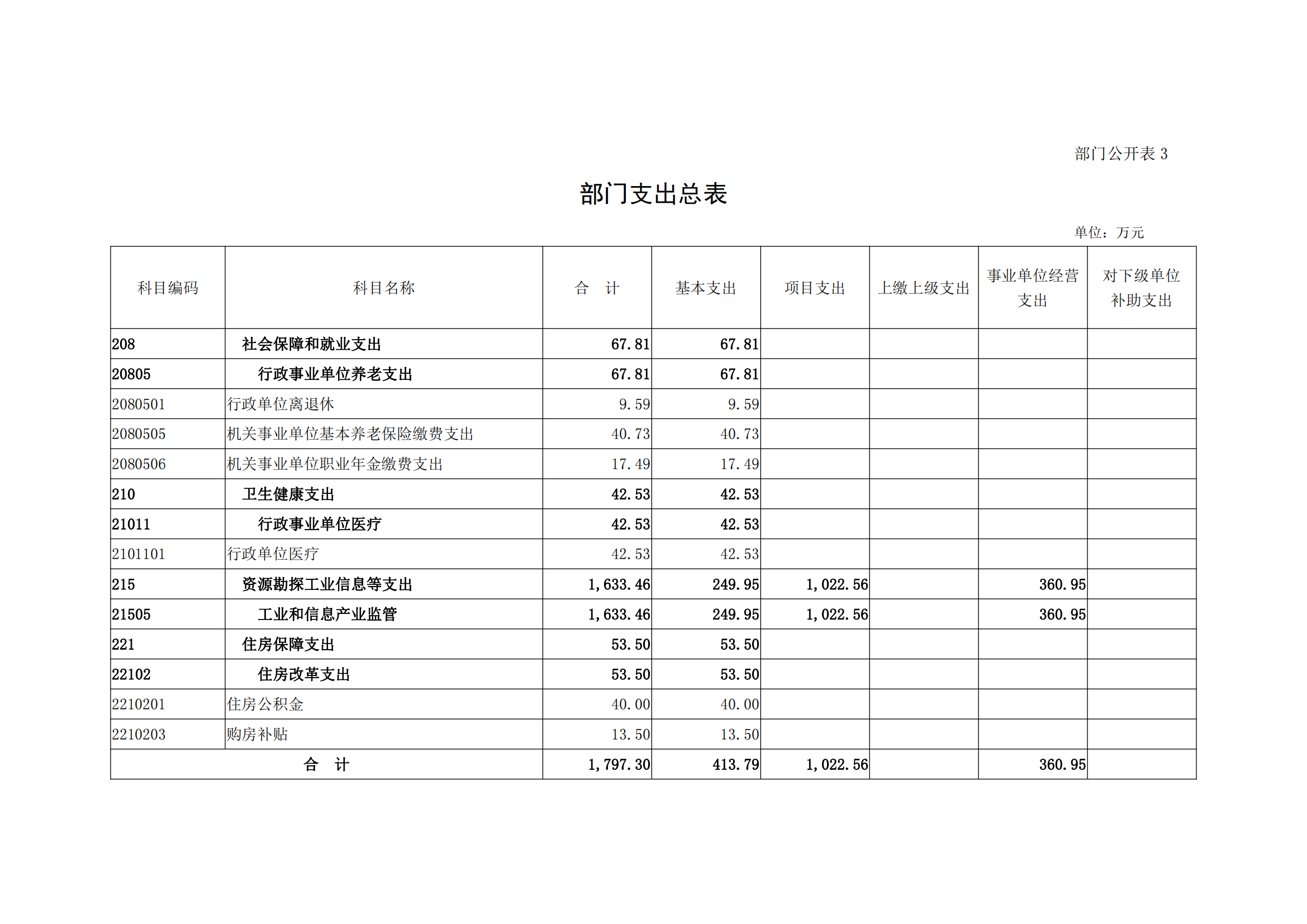 三、部门支出总表