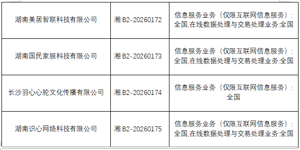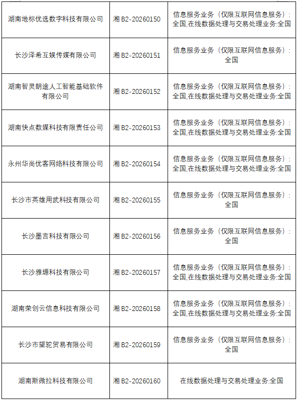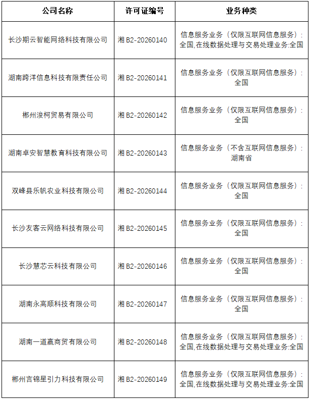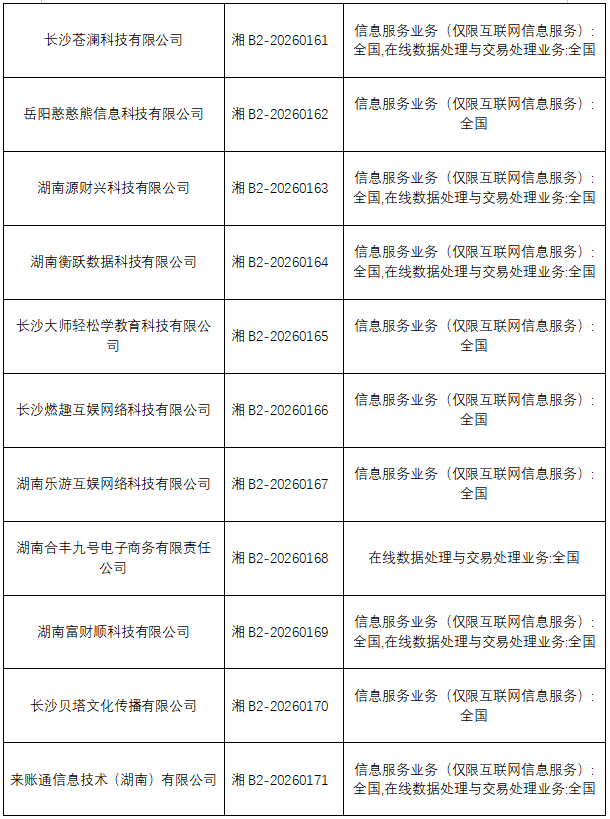 湖南省增值电信业务经营许可证发证信息(20260213)