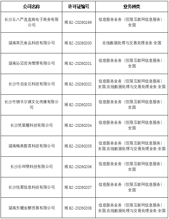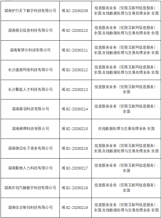 湖南省增值电信业务经营许可证发证信息(20260313)