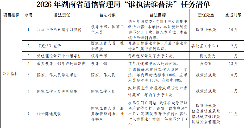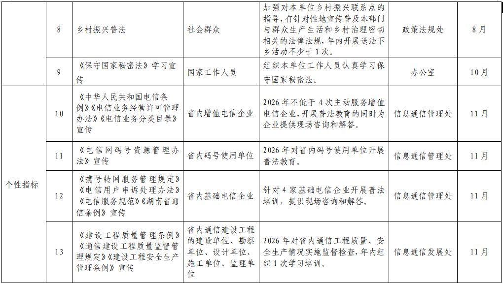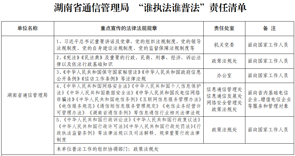 湖南省通信管理局2026年谁执法谁普法工作实施方案